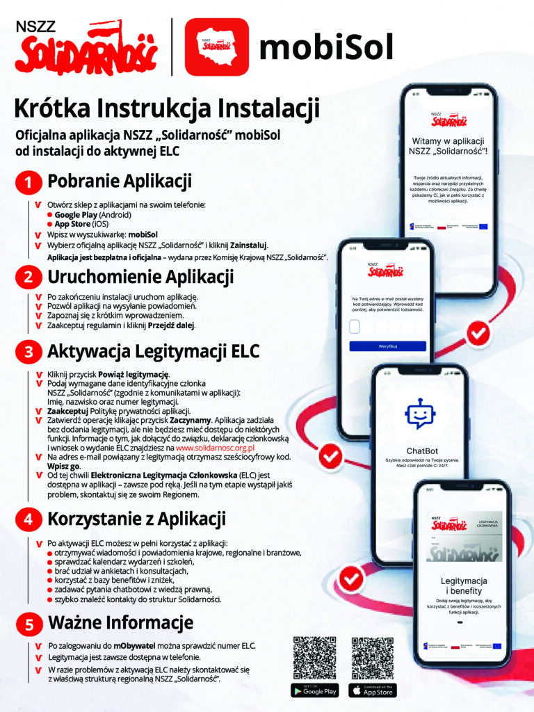 Ruszył projekt pilotażowy oficjalnej aplikacji mobilnej NSZZ „Solidarność” – mobiSol, stworzonej jako nowoczesne narzędzie komunikacji z członkami i sympatykami Związku. Aplikacja umożliwia szybki dostęp m.in. do elektronicznej legitymacji związkowej, aktualności, wydarzeń, benefitów oraz ankiet i konsultacji społecznych.