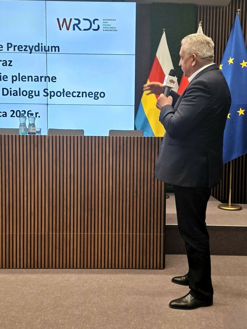 Posiedzenie plenarne rozpoczęło wręczenie powołania nowym członkom WRDS, wskazanym przez organizację pracodawców. Następnie zebrani zajęli się tematem sytuacji finansowej podlaskich jednostek ochrony zdrowia. Dyskusję oparto na danych przedstawionych przez kierownictwo Departamentu Zdrowia Urzędu Marszałkowskiego oraz podlaskiego NFZ. Niestety, z uwagi na niezamknięcie ksiąg rachunkowych, uczestnicy posiedzenia nie poznali ostatecznych wyników za rok 2025. Z przedstawionych danych wynika, że straty wojewódzkich placówek medycznych są mniejsze, ale nadal sięgają ok. 122 mln zł. Jak wskazywali referujący jest to spowodowane głównie niską wyceną części świadczeń oraz rosnącymi kosztami funkcjonowania placówek, zwłaszcza wynagrodzeń.