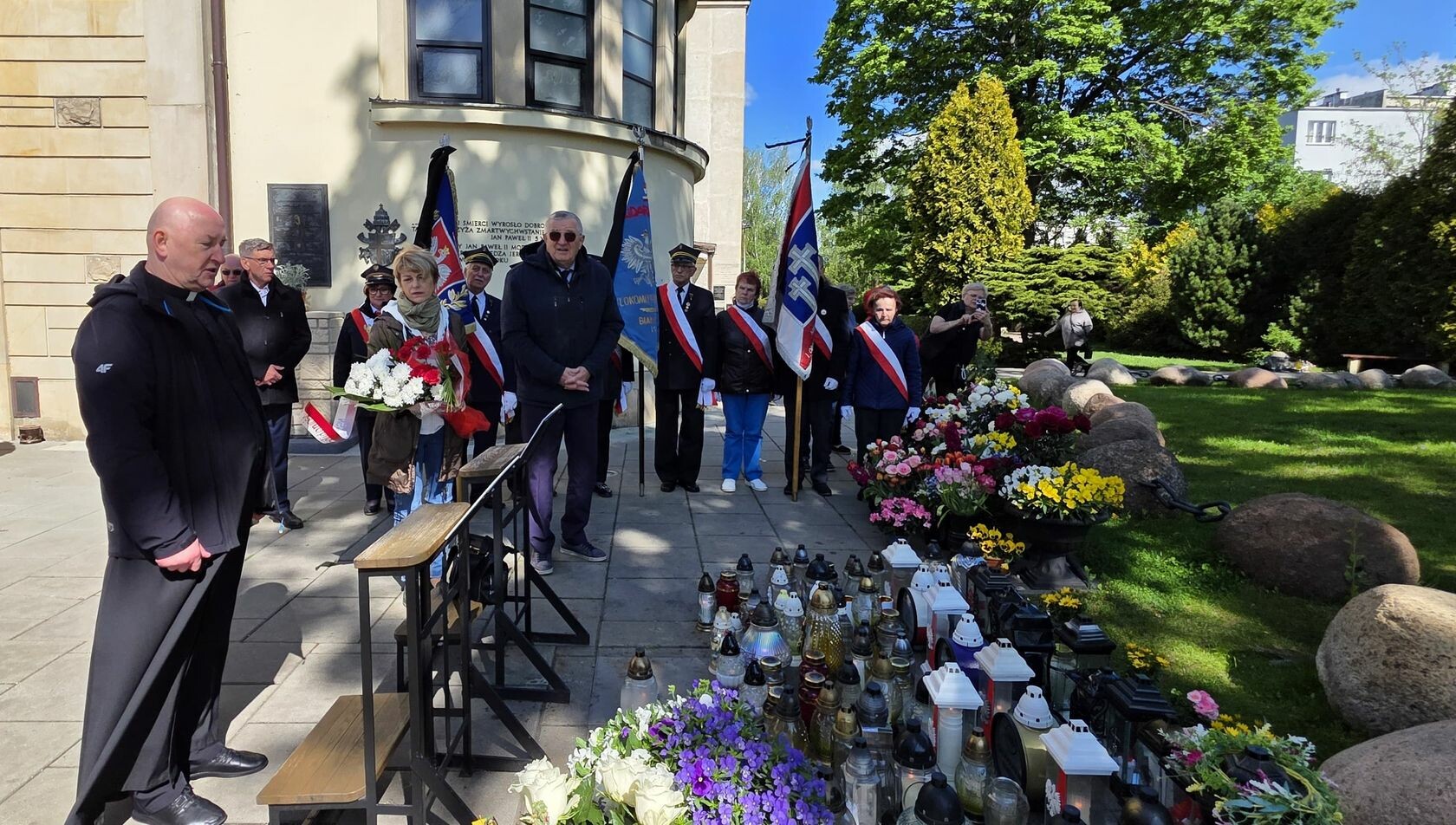 Związkowcy z Podlasia w asyście pocztów sztandarowych złożyli kwiaty przy pomniku bł. ks. Jerzego Popiełuszki.