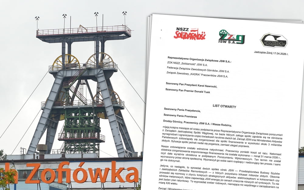 Reprezentatywne organizacje związkowe z JSW S.A wystosowały list otwarty, w którym alarmują, że zarząd spółki i Ministerstwo Aktywów Państwowych nie wywiązują się z porozumień dotyczących programu naprawczego spółki. Wystąpienie zostało zaadresowane m.in. do prezydenta Karola Nawrockiego i premiera Donalda Tuska.